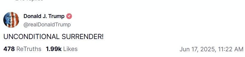 Or is this all one big game of [nuclear] chicken, where the hope is that Iran will suddenly raise the white flag? Trump is now suggesting that Israel and the US could go all in until there's nothing short of "unconditional surrender!"...